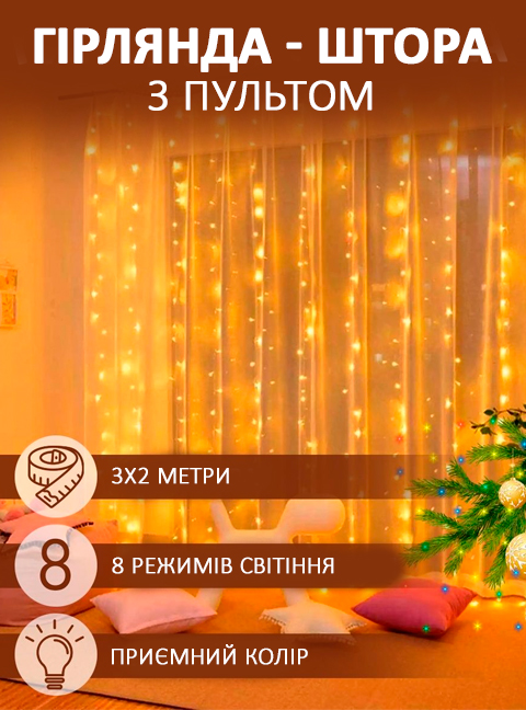 Гірлянда – штора – це унікальний спосіб декоративно-світлового оформлення до свята.